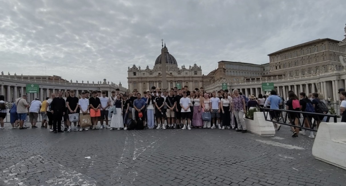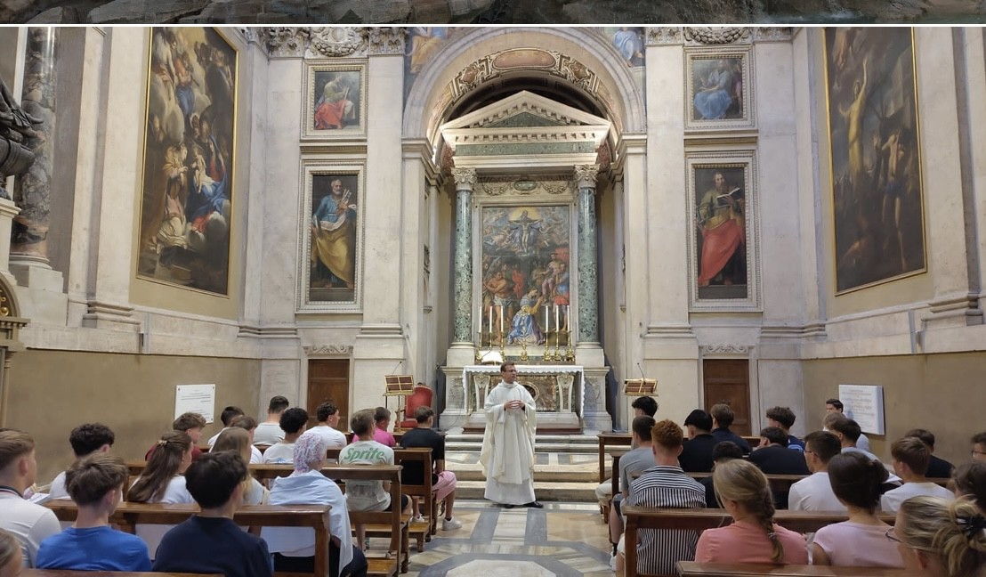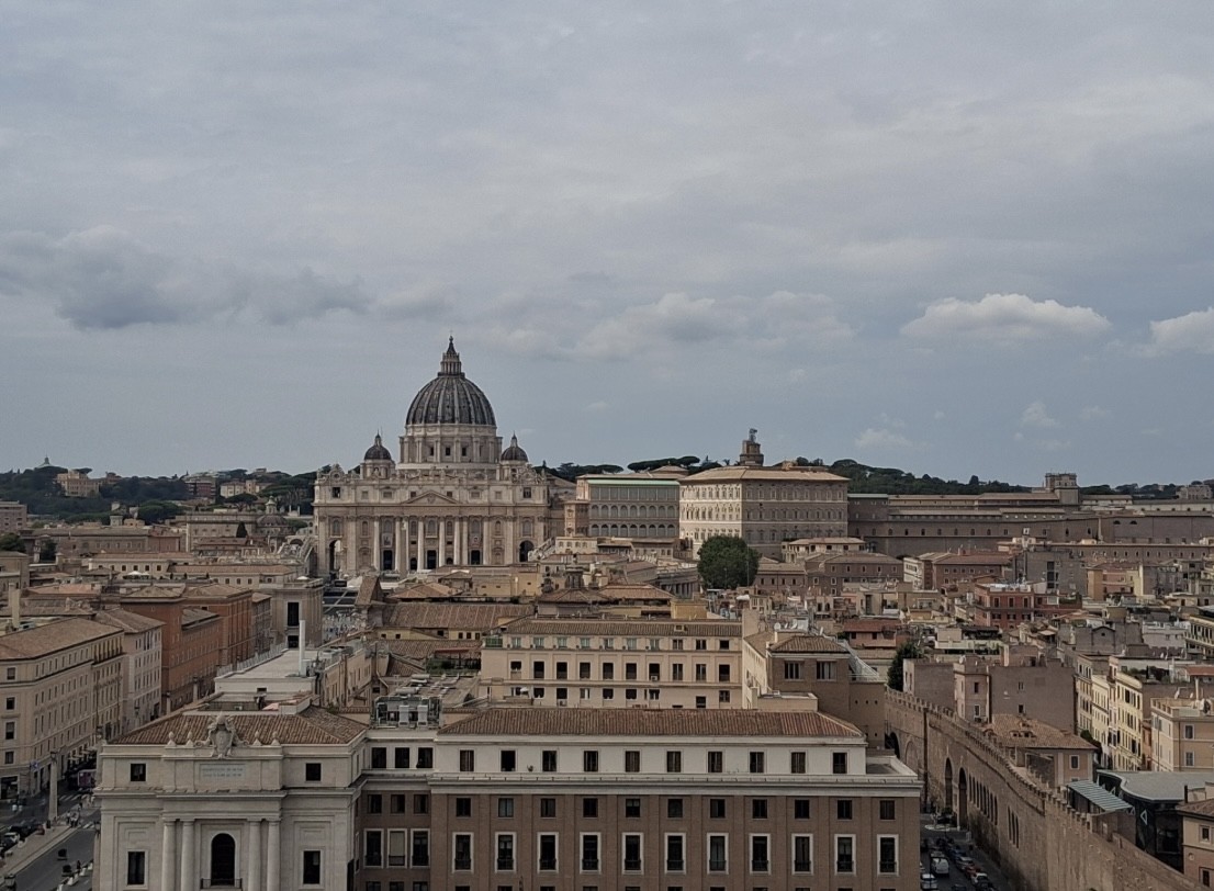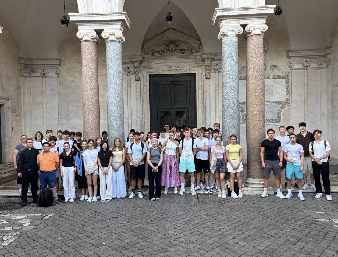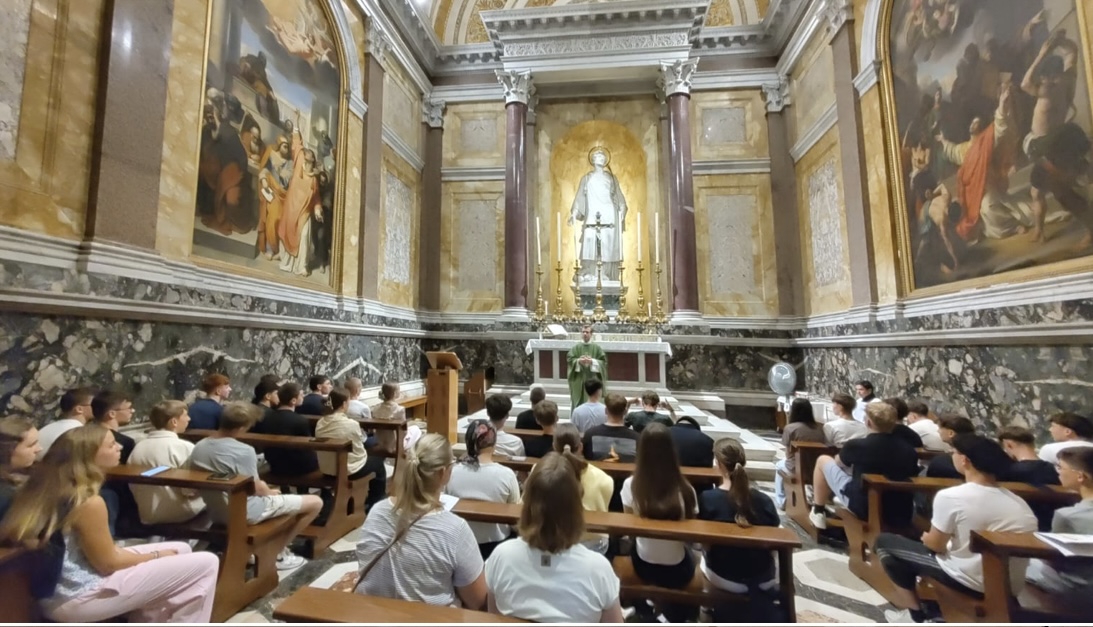 Morgens in Rom angekommen vergeudeten wir keine Zeit und brachten unsere Koffer zügig ins Hotel, um anschließend einen ersten Orientierungsspaziergang durch die Stadt zu machen und dann pünktlich gegen 12 Uhr zur Heiligsprechung von Carlo Acutis und Pier Giorgio Frassati am Petersplatz zu sein und dann mit dem Papst den Angelus zu beten. Viele waren erschlagen vom ersten Eindruck der Stadt. Und auch von der Hitze. An jeder Ecke gab es etwas zu sehen und etliche schöne Fotomotive. Um noch mehr davon zu sehen, bekamen wir am Nachmittag eine Stadtführung, in der uns die wichtigsten Orte des historischen Zentrums der Stadt gezeigt worden sind, die man mindestens einmal gesehen haben muss. So zum Beispiel antike Plätze, wie das Kolosseum, oder das Forum Romanum, wichtige Kirchen oder das Regierungsviertel. Zum Abschluss des ersten Programmtages feierten wir dann in Santa Maria Maggiore die Hl. Messe. Nach dem Abendessen hatten wir dann Freizeit, bevor wir dann alle froh waren, nach der anstrengenden Fahrt und dem ersten Tag, abends ins Bett zu fallen.