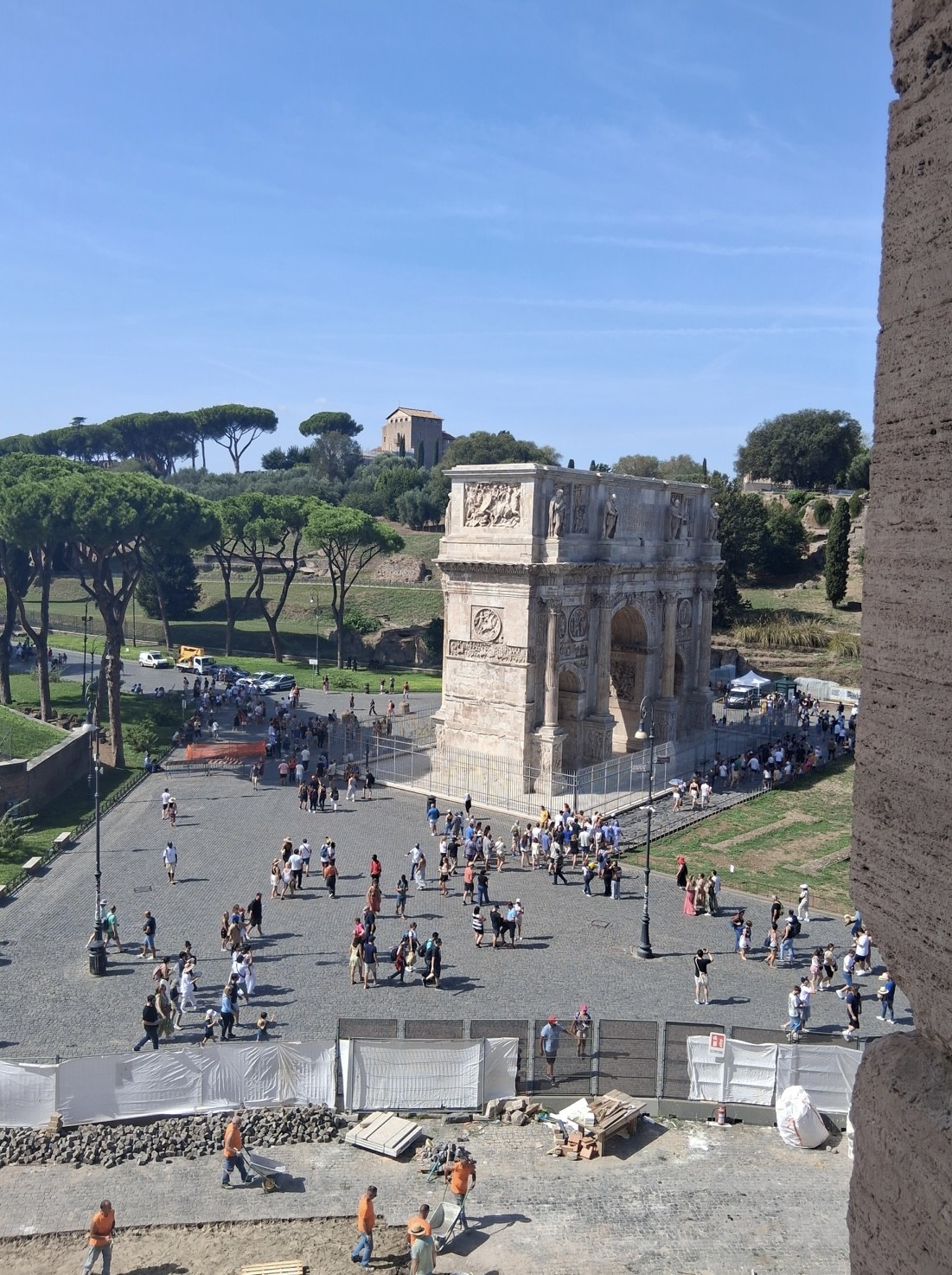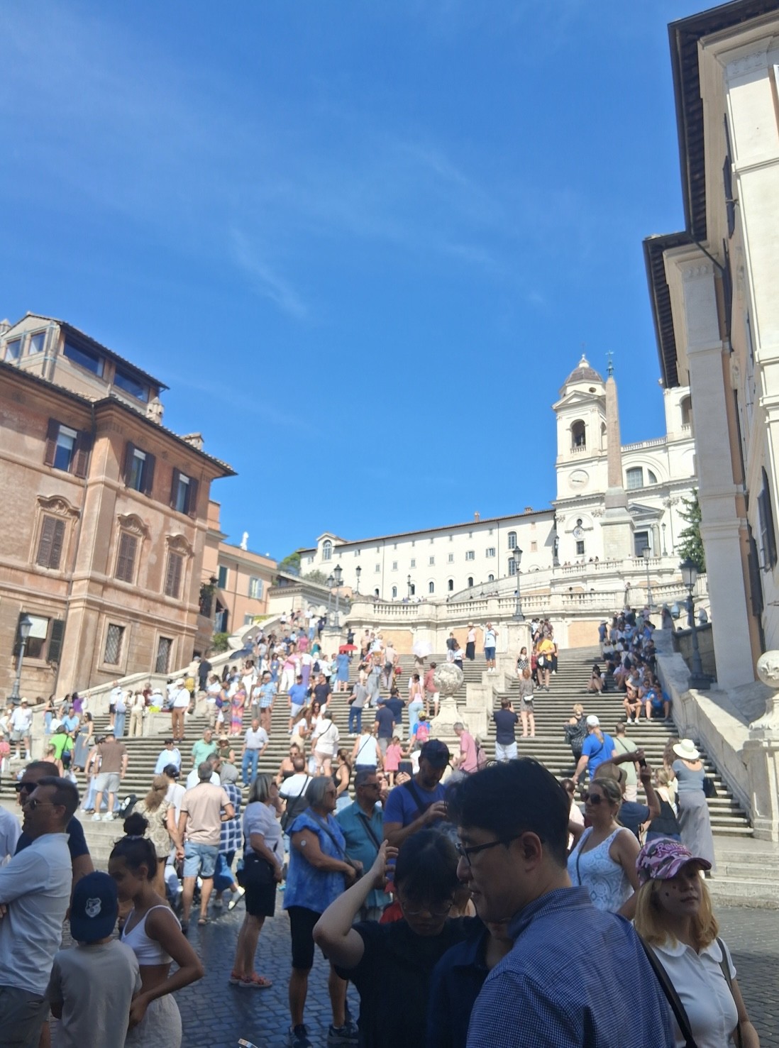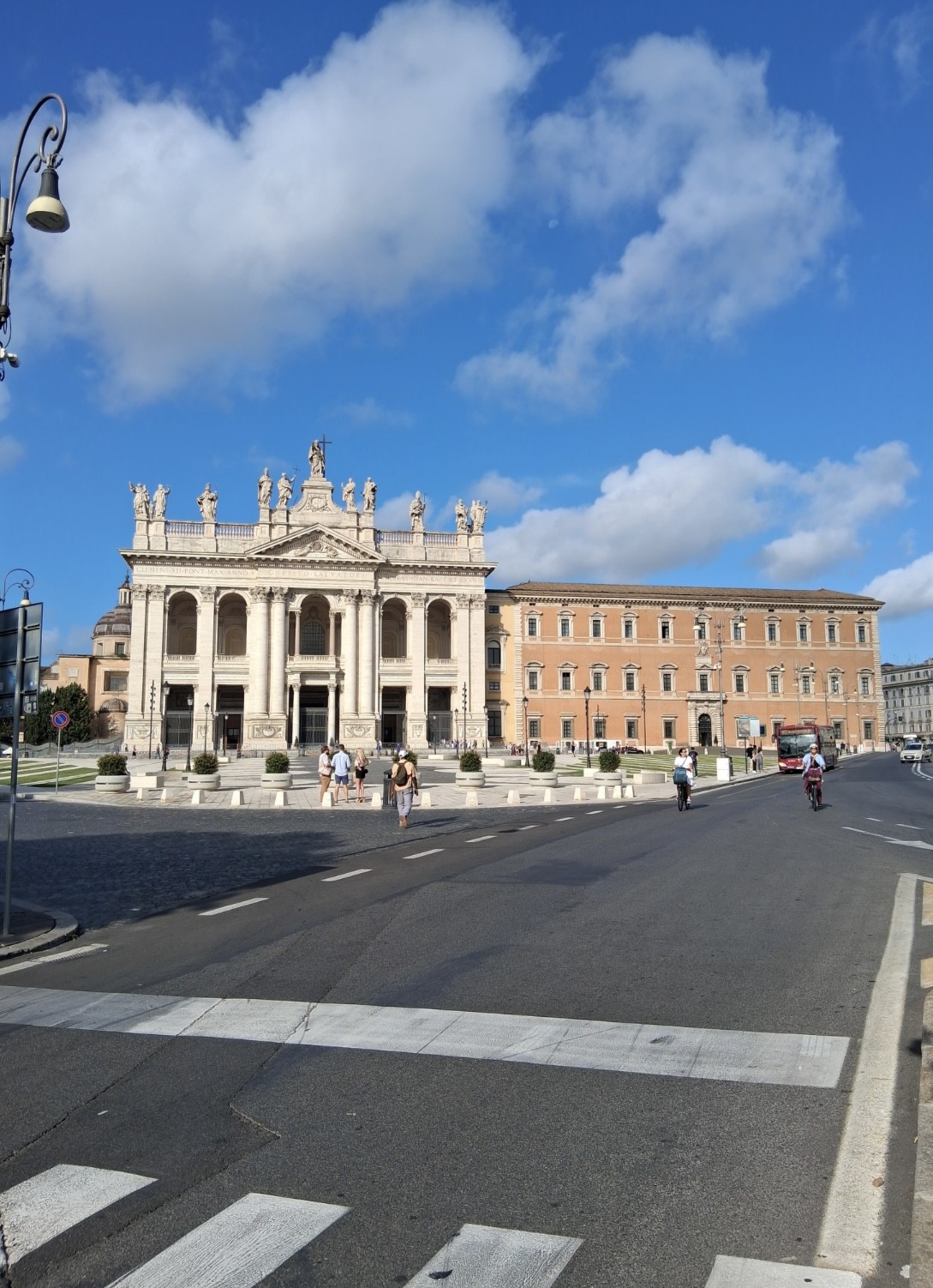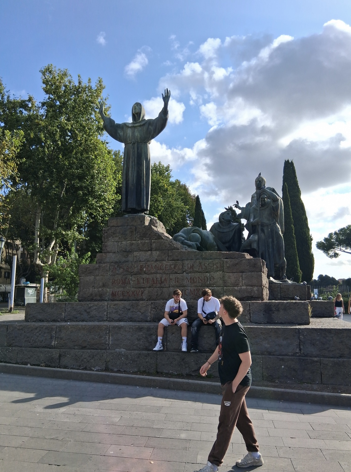 Morgens in Rom angekommen vergeudeten wir keine Zeit und brachten unsere Koffer zügig ins Hotel, um anschließend einen ersten Orientierungsspaziergang durch die Stadt zu machen und dann pünktlich gegen 12 Uhr zur Heiligsprechung von Carlo Acutis und Pier Giorgio Frassati am Petersplatz zu sein und dann mit dem Papst den Angelus zu beten. Viele waren erschlagen vom ersten Eindruck der Stadt. Und auch von der Hitze. An jeder Ecke gab es etwas zu sehen und etliche schöne Fotomotive. Um noch mehr davon zu sehen, bekamen wir am Nachmittag eine Stadtführung, in der uns die wichtigsten Orte des historischen Zentrums der Stadt gezeigt worden sind, die man mindestens einmal gesehen haben muss. So zum Beispiel antike Plätze, wie das Kolosseum, oder das Forum Romanum, wichtige Kirchen oder das Regierungsviertel. Zum Abschluss des ersten Programmtages feierten wir dann in Santa Maria Maggiore die Hl. Messe. Nach dem Abendessen hatten wir dann Freizeit, bevor wir dann alle froh waren, nach der anstrengenden Fahrt und dem ersten Tag, abends ins Bett zu fallen.