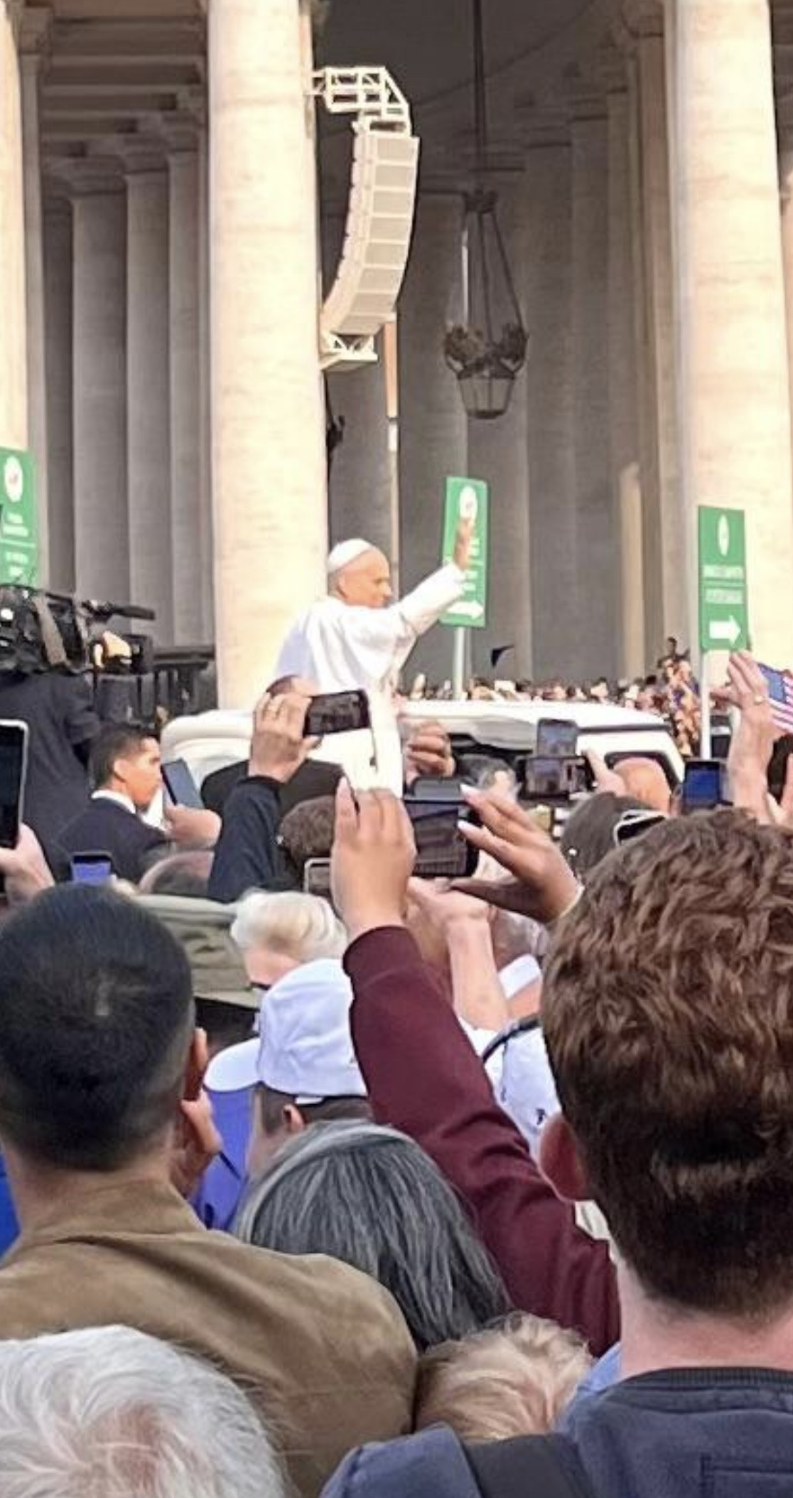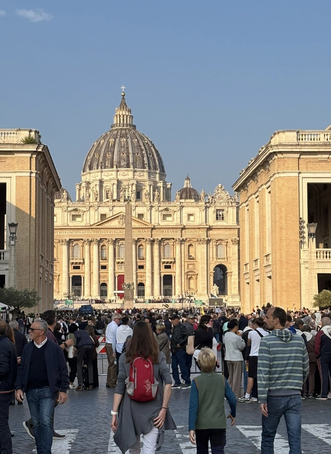 Was mich aber gänzlich „erwischt“ hat, war die Audienz auf dem Petersplatz. Zigtausende Menschen aus aller Welt (meine Karte trug die Nummer 39.868), die auf Papst Leo IV. warten mit gezückten Handys, um ja keine Chance zu verpassen. In der Tat, auch unsere Videos und Fotos zeigen ihn zum Greifen nah. Manchen von uns gelang es, in der ersten Reihe einen Platz zu ergattern, als Papst Leo in seinem Papamobil vorbeifuhr. Die ganze Welt war da, zigtausende Menschen, die friedlich hergekommen waren, nun friedlich beieinanderstanden und nur eines wollten, den Papst sehen. Und dann rief er auf, das VATER UNSER zu beten und auch das gelang friedlich mit allen gemeinsam und wir taten es in der die Welt umspannenden Sprache Latein, bevor alle Menschen wieder friedlich auseinandergingen. Dass Frieden möglich ist, wurde mir in diesem Moment bewusst und das werde ich – wie vieles andere von dieser Woche in Rom im Hl. Jahr 2025 – zeitlebens nicht mehr vergessen. Auch nicht, dass unser Pastor Albert echte Reiseleiter-Qualitäten hat. Für all sein Kümmern und seine Geduld mit uns gebührt ihm ein herzliches Dankeschön