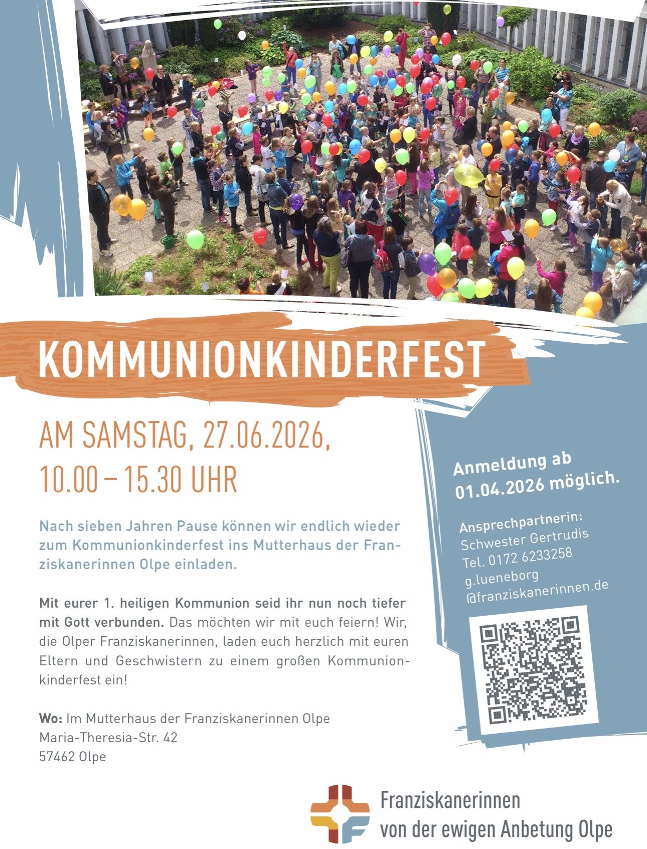 Nach 7jähriger Pause laden die Franziskanerinnen Olpe wieder zum Kommunionkinderfest ein.