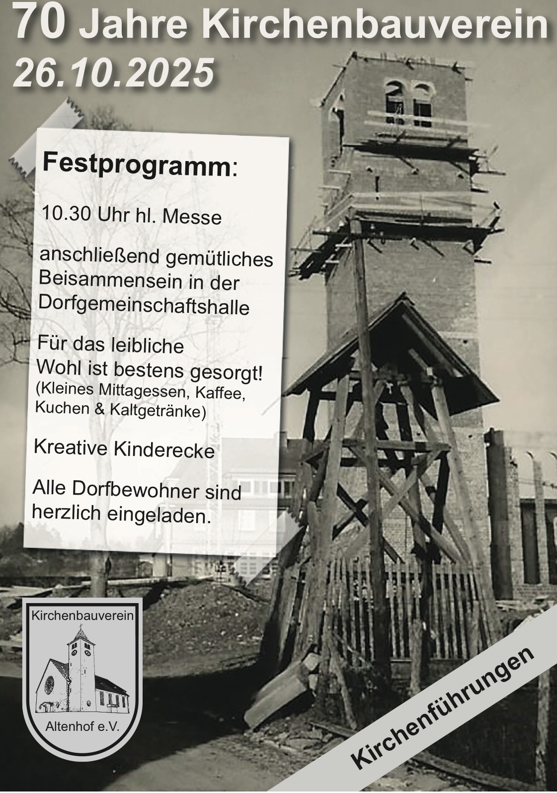 Im Anschluss findet ein gemütliches Beisammensein in der Bürgerbegegnungsstätte statt. Für die kleinen Gäste besteht die Möglichkeit in einer kreativen Kinderecke die Zeit zu verbringen. Des Weiteren finden, für alle Interessierten, Kirchenführungen statt.
