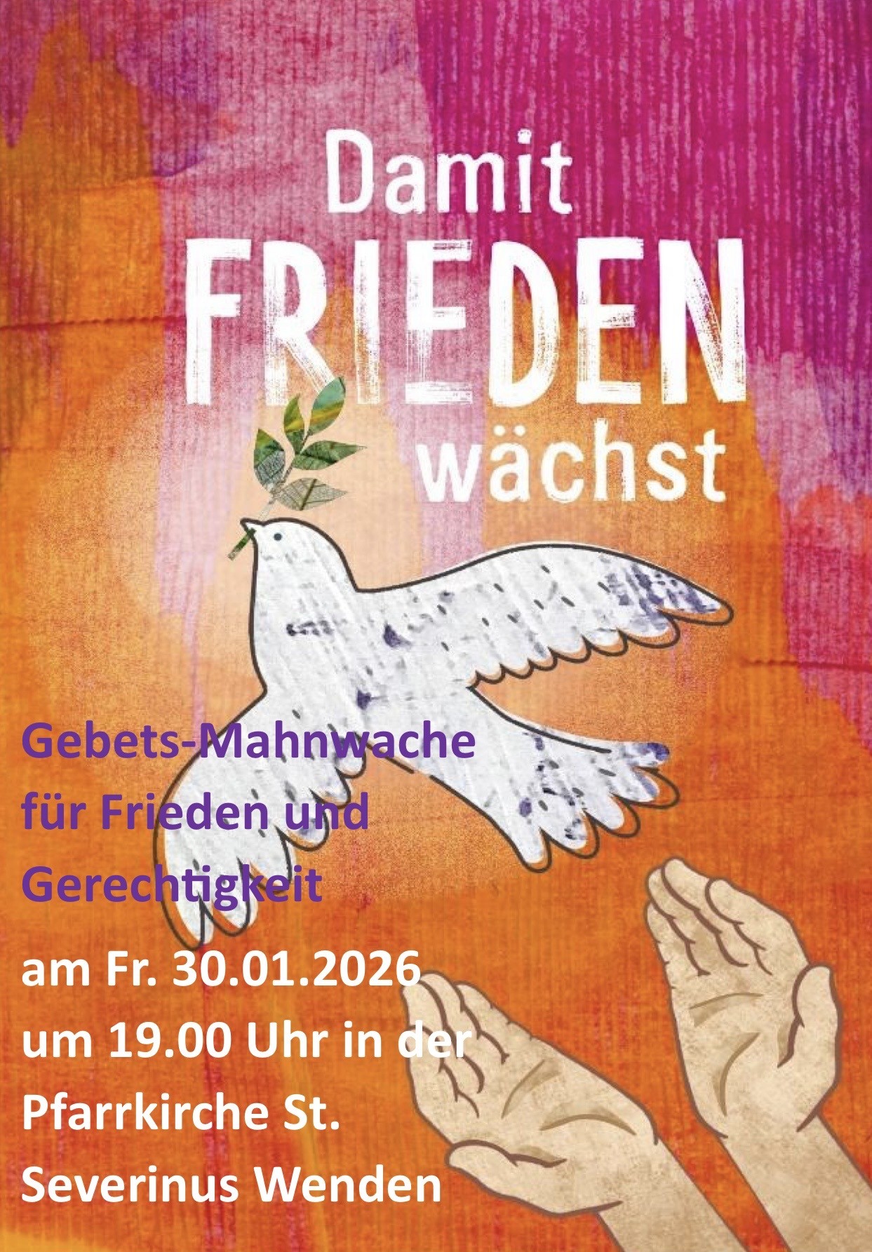 Einladung zum gemeinsamen Gebet für Frieden und Gerechtigkeit in unserer Welt.